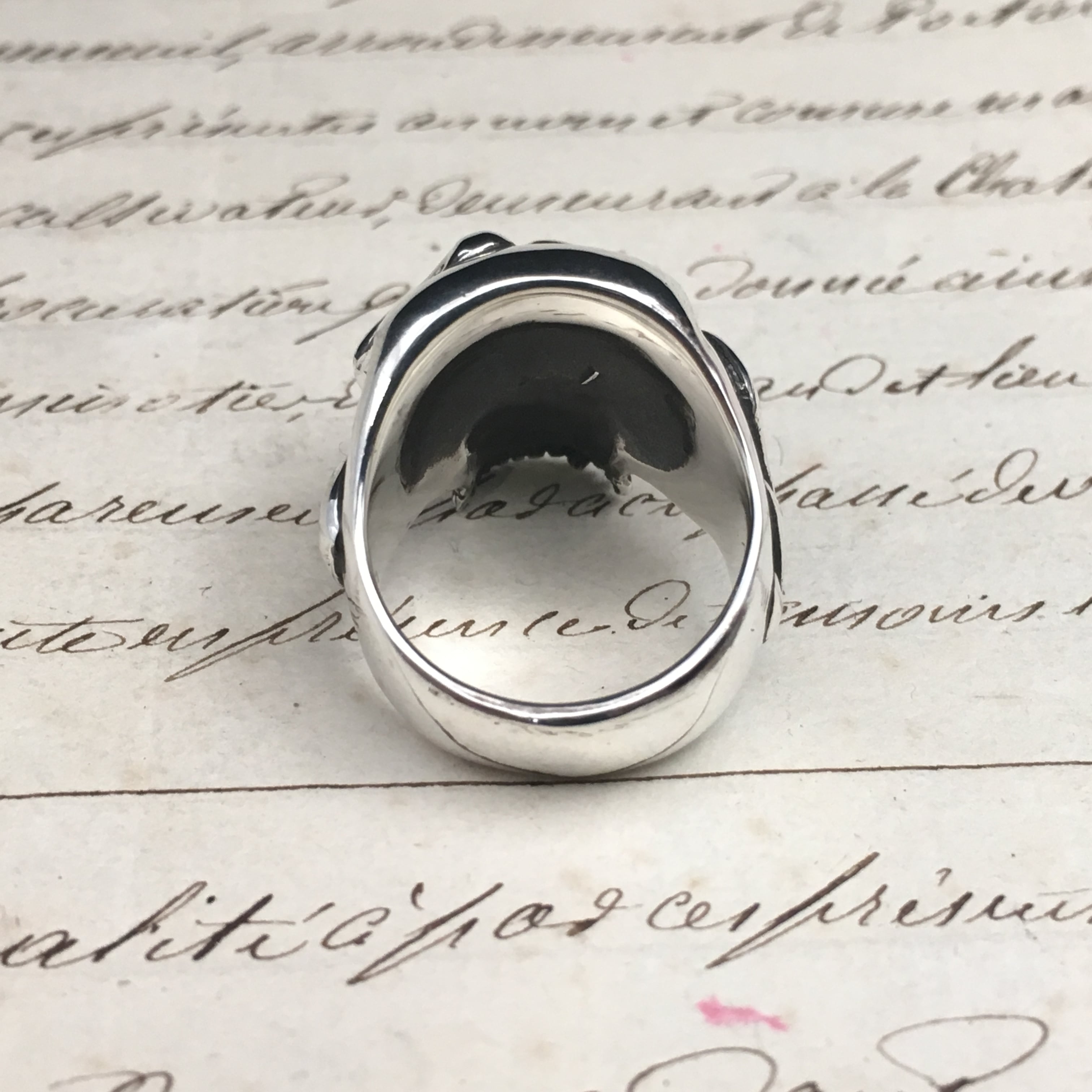 スカルは男性向けな物が多いですが、女性にお守りの様に身に着けてもらいたいという想いから、「女性の小指でさえも着けられるスカルリング」を心がけて作られていますのでサイズは#3から#15という特殊なサイズ設定となっています。