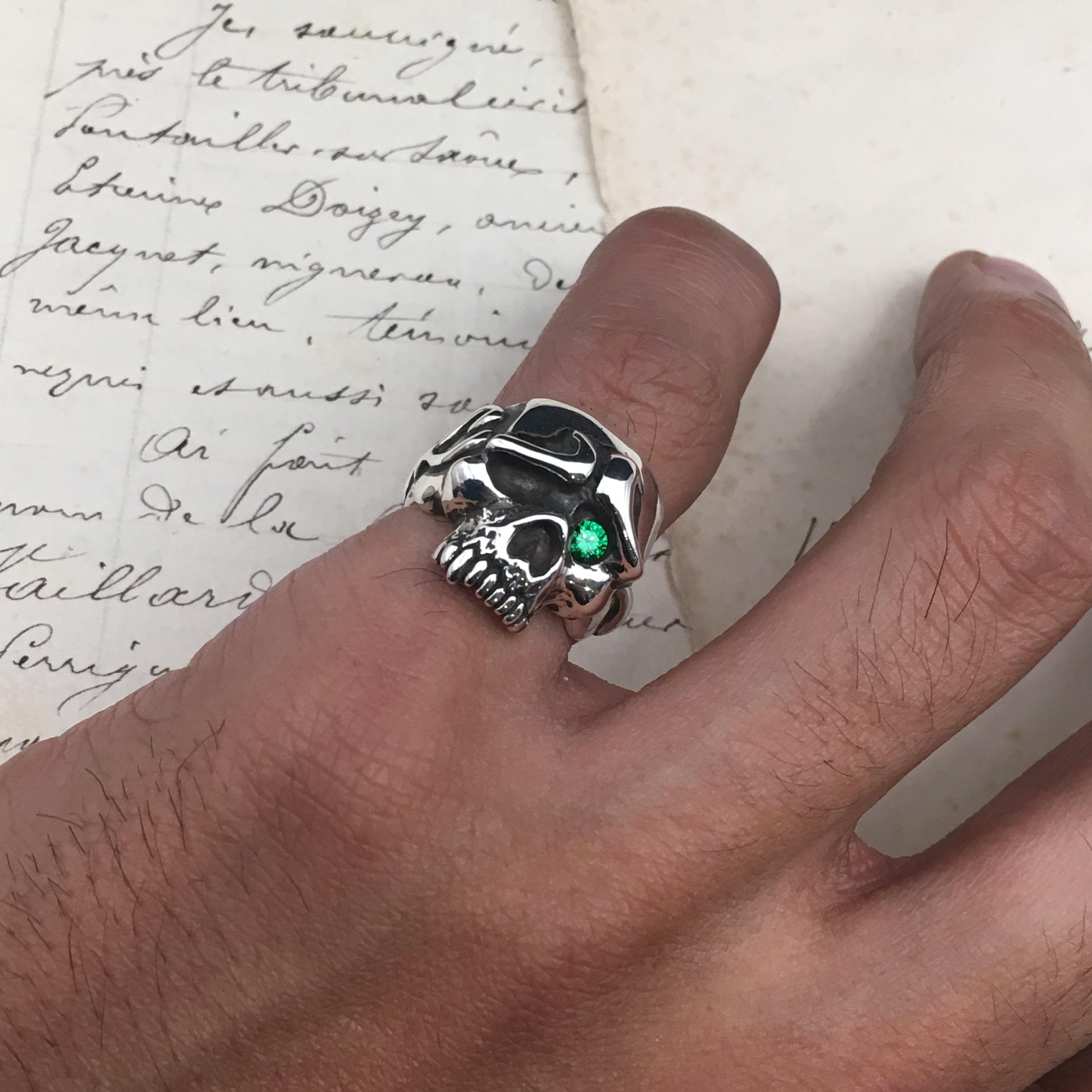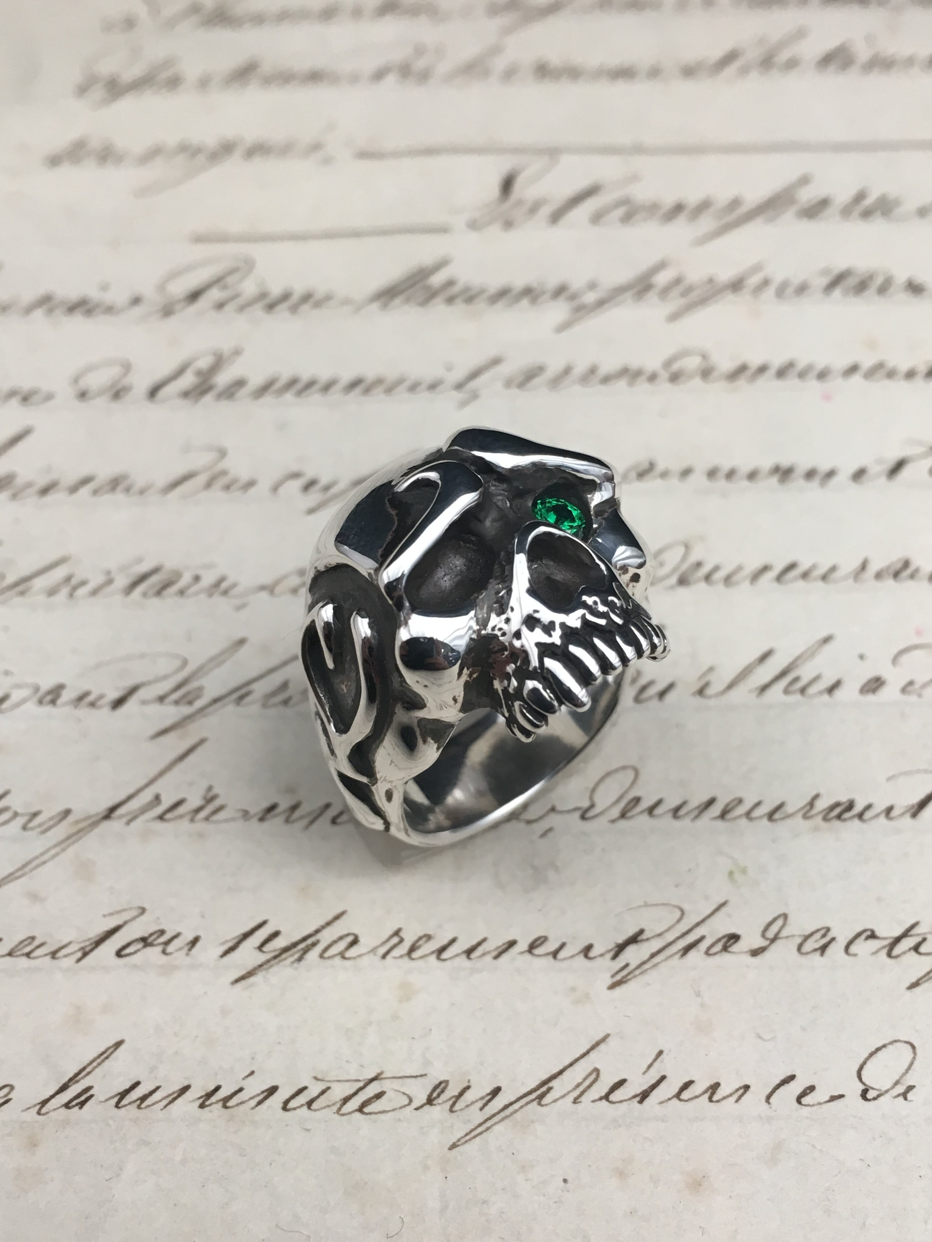Never Cry Skull Ring 【ネバークライスカルリング】 ※燻し有・グリーンジルコニア
